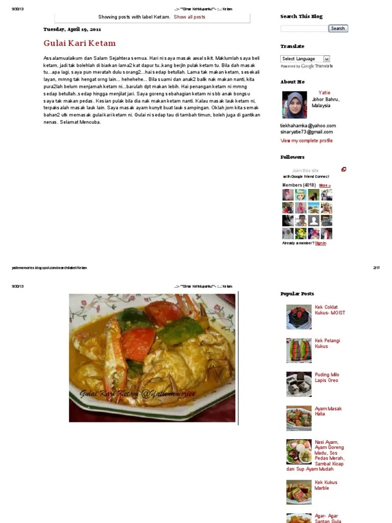 Di samping itu kalau nak beli ketam kena beli masa seminggu selepas bulan purnama. Resepi gulai ketam tumis darat. Resepi bahan ketam bawang besar bawang putih halia kunyit hidup cili padi lada merah serai daun kunyit asam keping santan minyak air garam dan perisa.